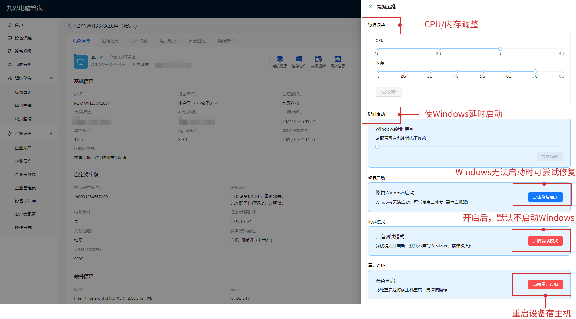 1、CPU/内存调整:可调整设备端CPU及内存的大小,实现硬件级的调整及复用;